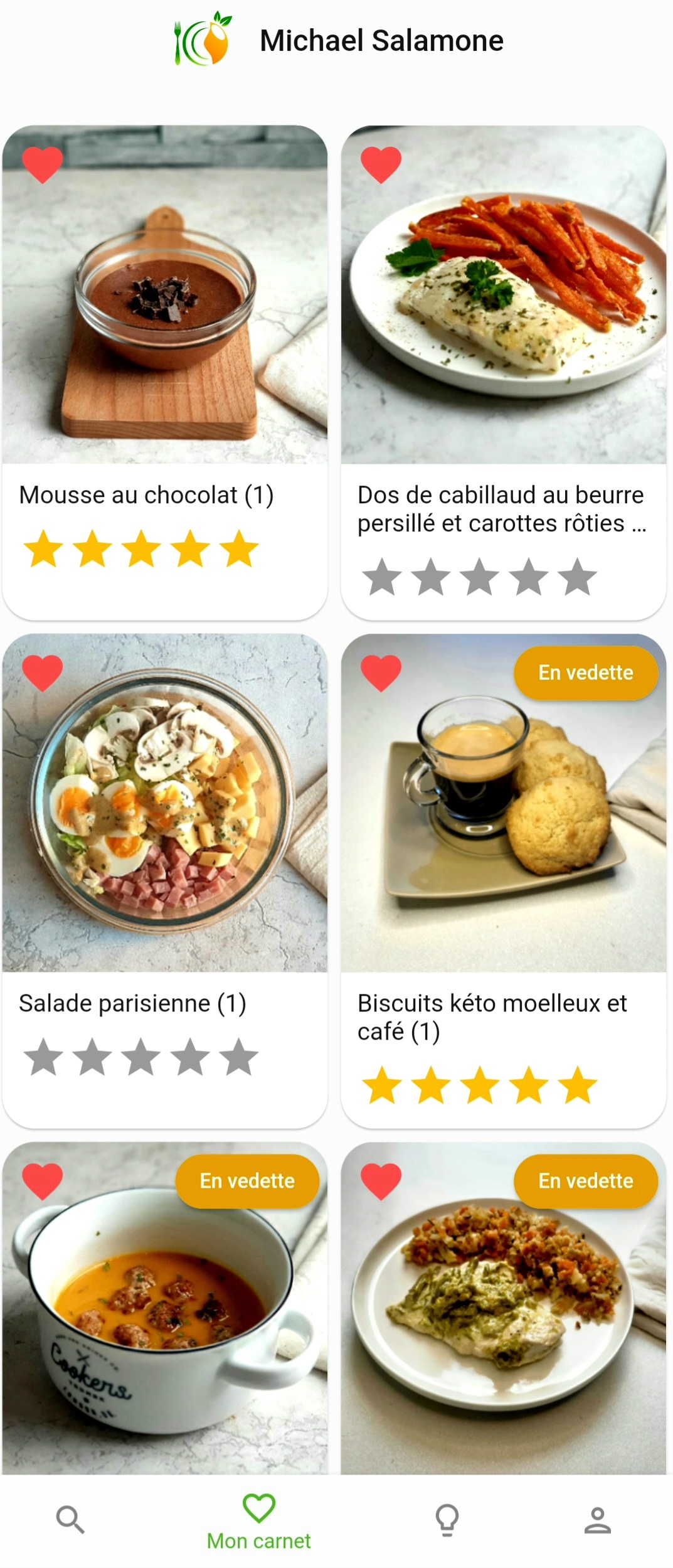 Ajout fréquent de nouvelles recettes avec une marque "en vedette".